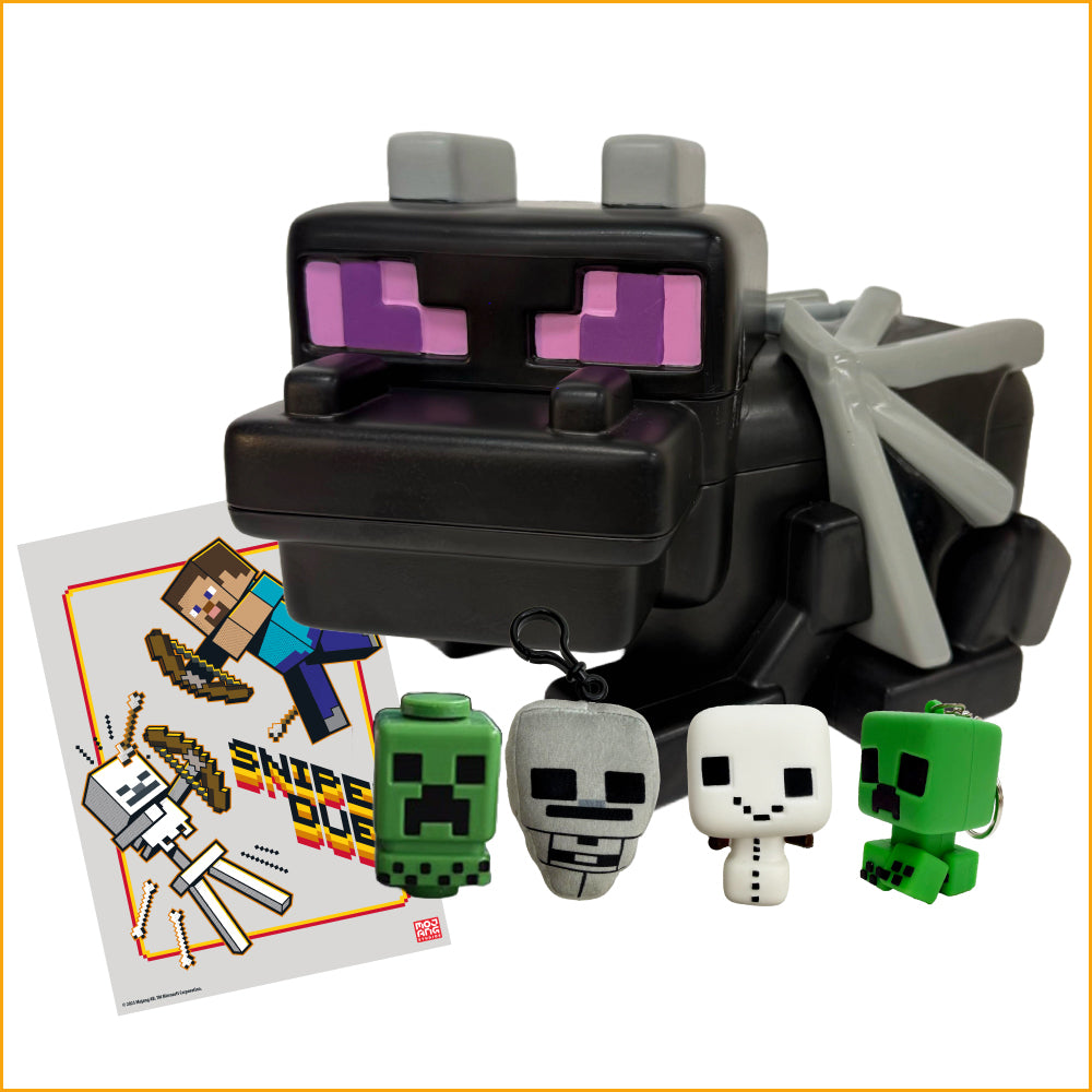 大きなエンダードラゴンの中には、ゲーム内でおなじみのキャラクターたちをモチーフにした5種類のアイテムが入っています。どれもブラインド仕様でどのキャラクターが入っているかは開けてからのお楽しみ!コレクションにもギフトにもぴったりの商品です。